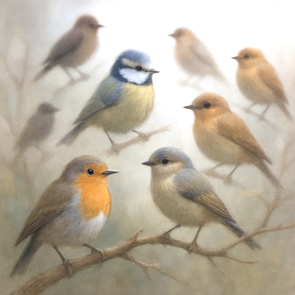 Morning light drapes a feathered dream,A gentle chirp stirs the breeze of the heart.