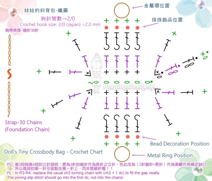 中間立體圖案-表引長針2-4針可自由作變化 Center texture: FPdc 2–4 sts, adjust as desired. ✨